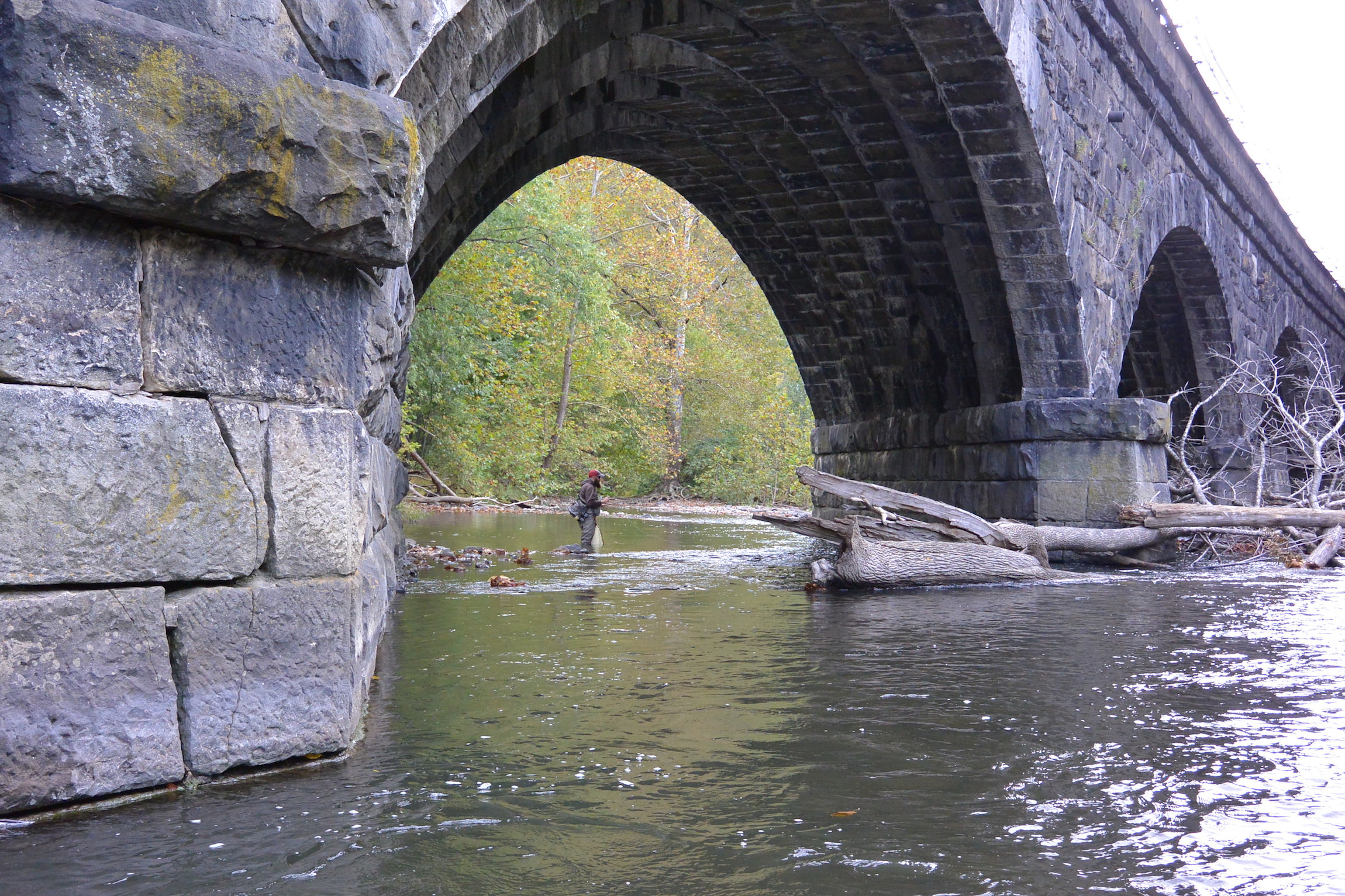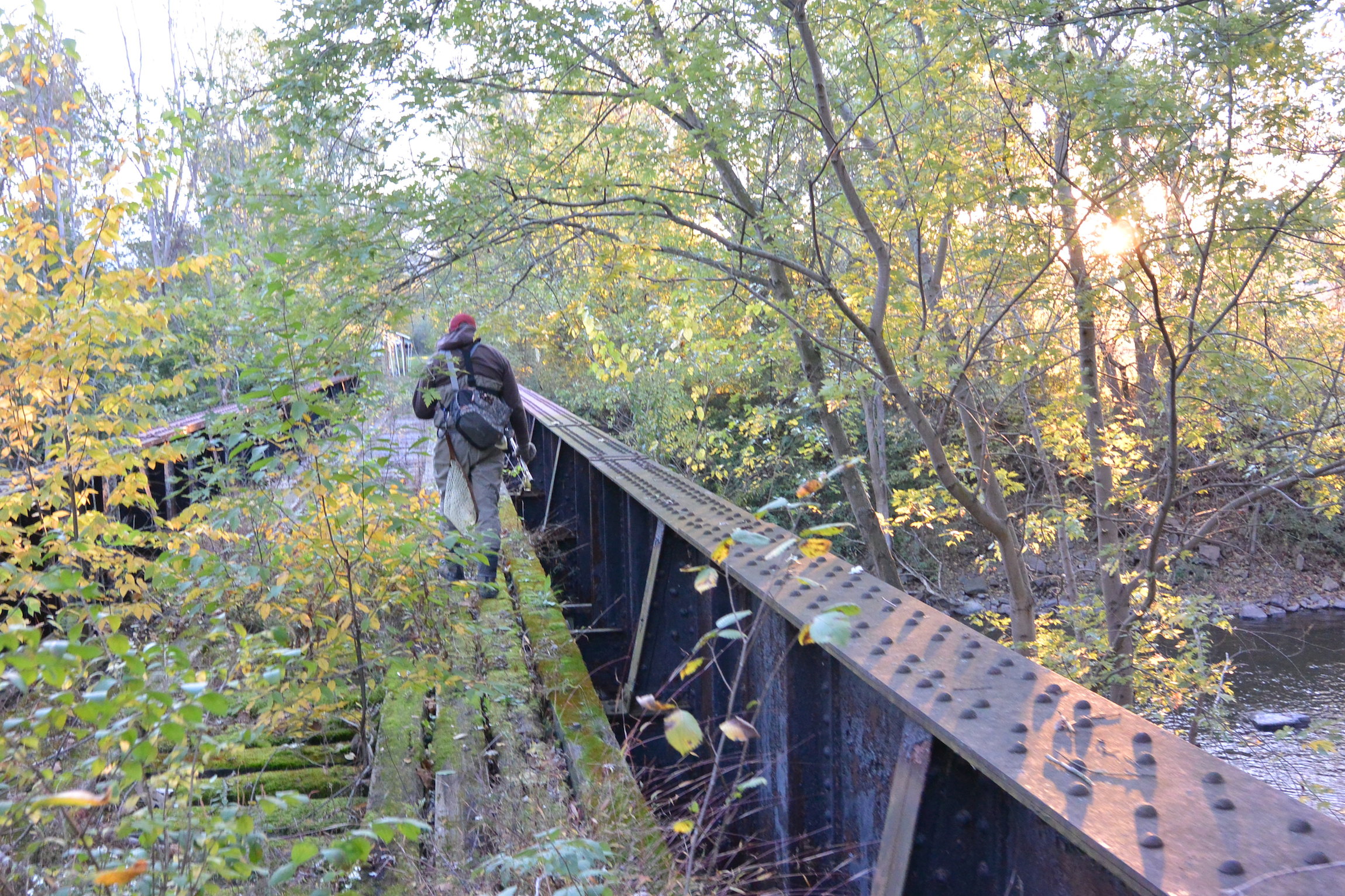 I made Huntingdon by 6:45am, I was 30 minutes late. Nobody likes a late fishing buddy. Unfortunately, when it comes to my personal fishing, I am that guy. Never the less we made it to the lower stream by 7:00am. The water was beautiful. A few days of rain gave the river a much needed bump. We strung up the rods and went to work. Travis took me to the old, dilapidated railroad bridge we would work first. we stood on top of the failing structure and surveyed the water up and down.