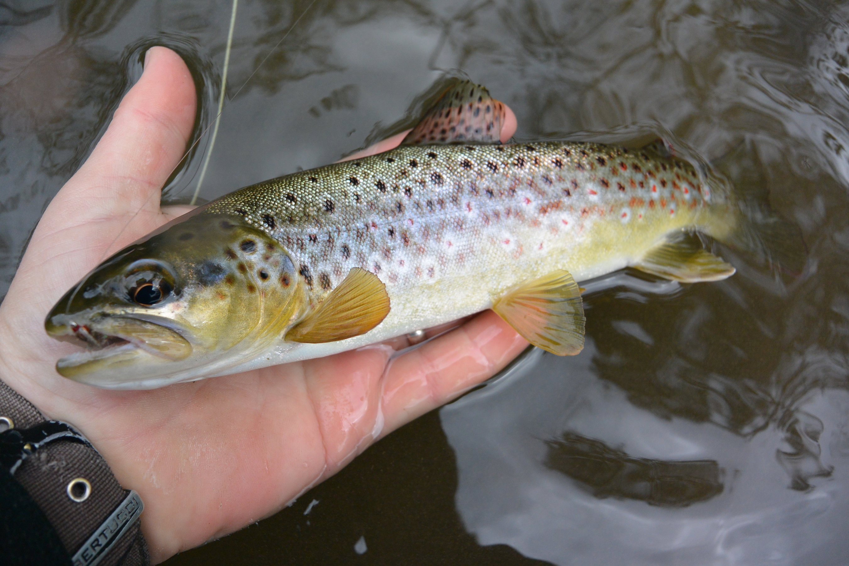 We decided to stop messing around and got down to business. I brought both my streamer rod and nymphing rod down so I could change my tactics quickly as I made my way down stream through various types of water. Browns tend to get more aggressive the closer they approach spawning season which is usually the end of October. Pre-spawn streamer fishing can be quite productive. I had a lot of follows and a few fish but I knew my retrieve was off. We both managed a couple in an hour but quickly called it and moved on.