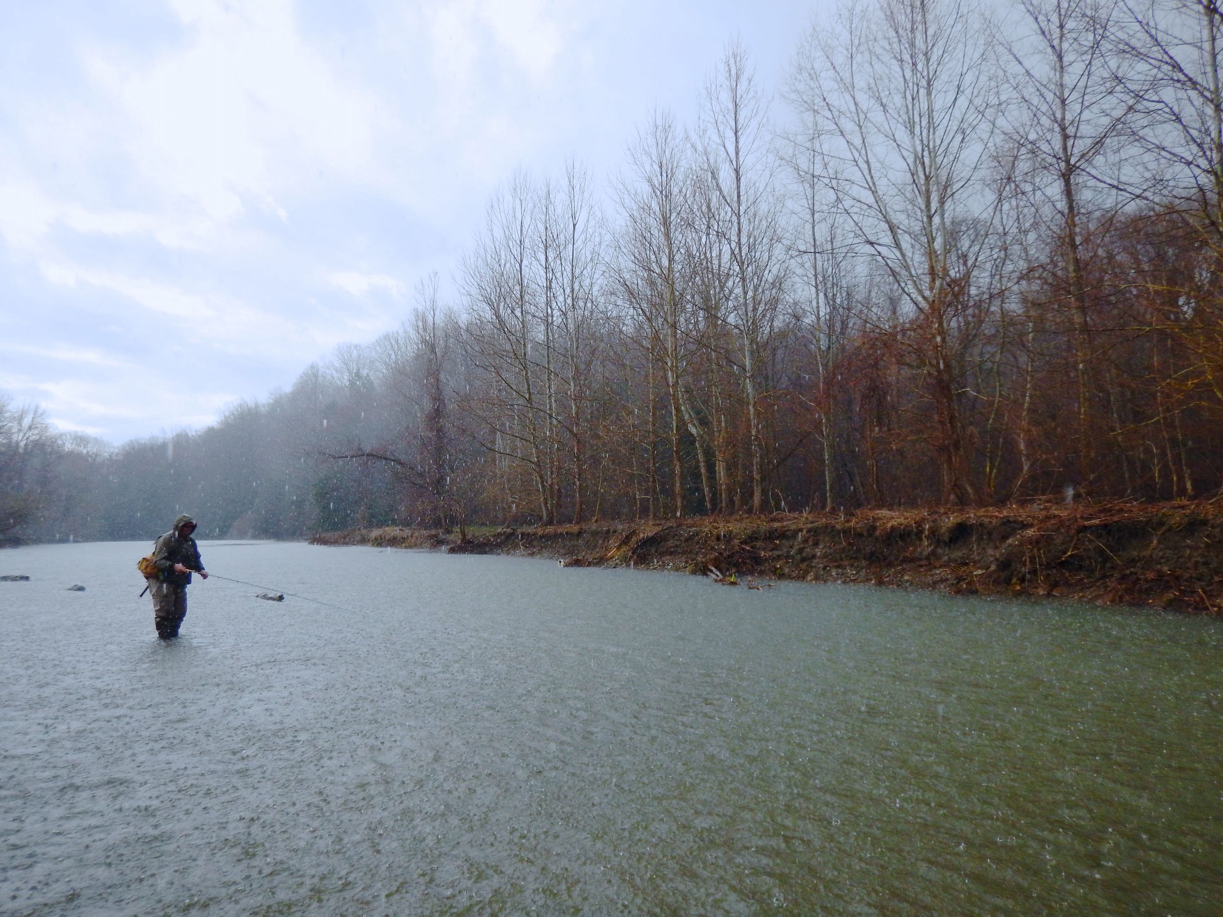 The water finally stabilized and none too soon as it was headed towards the color chocolate milk. Instead it stayed a nice steelhead green color but it wasn’t steelhead we would find as a second round of rain rolled through.