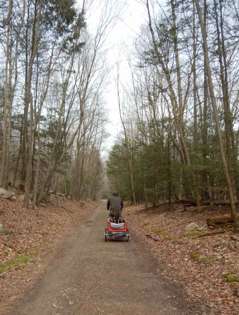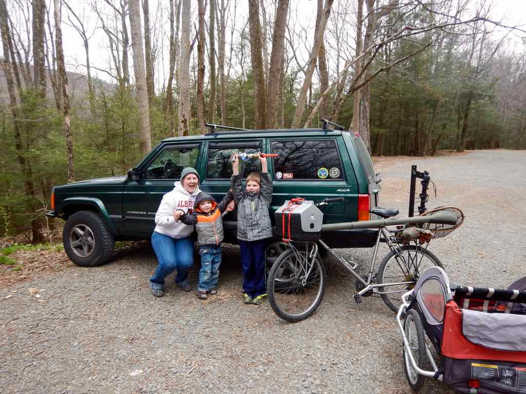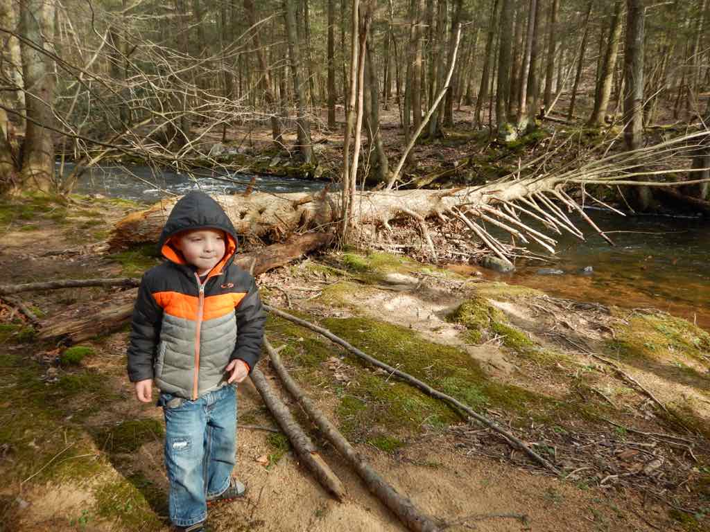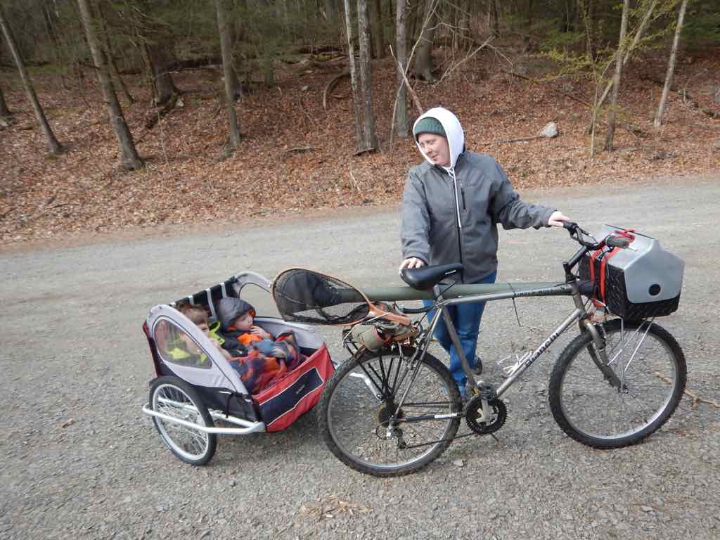 We found Stoney to be a great place to take the kids along to fish in a “wilderness” trout stream setting as we could get them pretty far back in the woods by transporting them in the bike trailer and then they could walk a couple hundred yards from the trail to the stream. Once down to the stream the kids had a great time. Cautiously and carefully looking under rocks they discovered some of the forest’s waking reptiles.