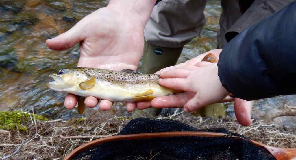 It can be difficult to keep the little ones interested but kids can often bring out healthy fishing habits if we let them by forcing us to slow down to read and explain water. Also, children tend to loose interest quickly which means you have to keep moving, which can also be a healthy habit when the fishing slows down.